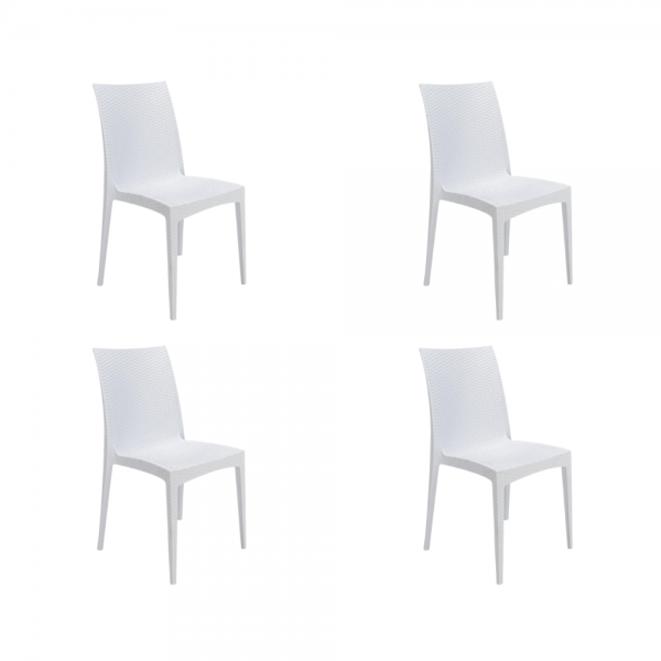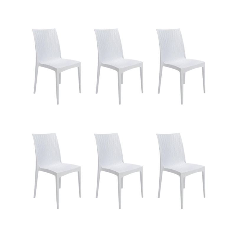 - GLOUPIE Set 6 Sedie Da Giardino Jersey In Polipropilene Bianco Dall'Effetto Rattan, Impilabile, L 57 x P 50 x H 89 Cm