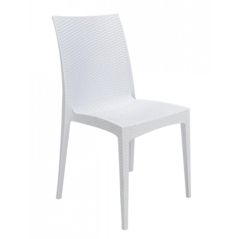 [Qualita' certificata made in italy]: Gloupie sedia da esterno jersey in polipropilene resistente ai raggi uv e alle intemperie bianco dall'effetto intrecciato rattan, impilabile, l 57 x p 50 x h 89 cm, seduta confortevole per arredi giardino, terrazze, piscina, patios e balconate 100% made in italy