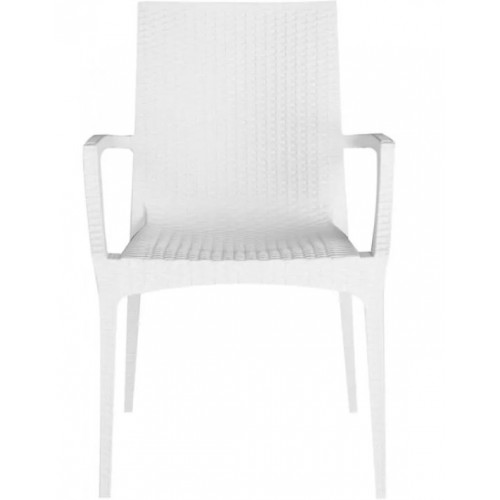 - GLOUPIE Set 2 Poltrone Giardino Jersey Con Braccioli, In Polipropilene Bianco Dall'Effetto Rattan Impilabile, 57 x 50 x H 89 Cm