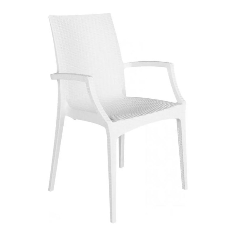 [Qualita' certificata made in italy]: Gloupie sedia da esterno jersey in polipropilene resistente ai raggi uv e alle intemperie bianco dall'effetto intrecciato rattan, impilabile, l 57 x p 50 x h 89 cm, seduta confortevole per arredi giardino, terrazze, piscina, patios e balconate 100% made in italy