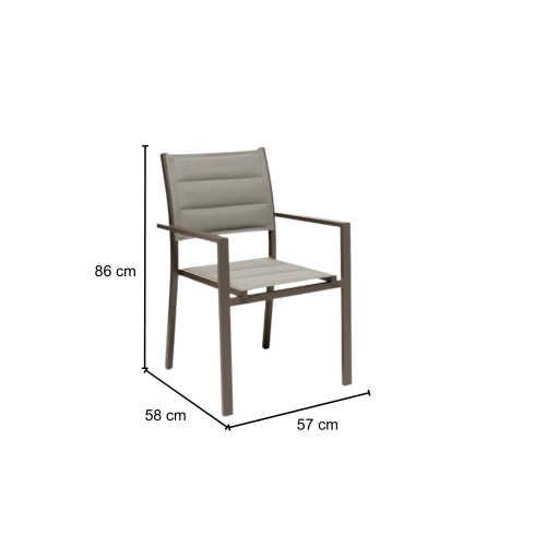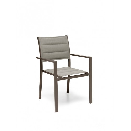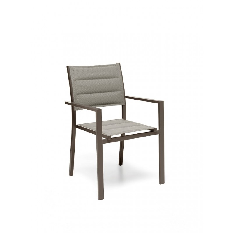 GLOUPIE Poltrona Da Esterno Alamos In Alluminio Verniciato Marrone, Impilabile, L 57 x P 58 x H 86 Cm, Seduta In Textilene