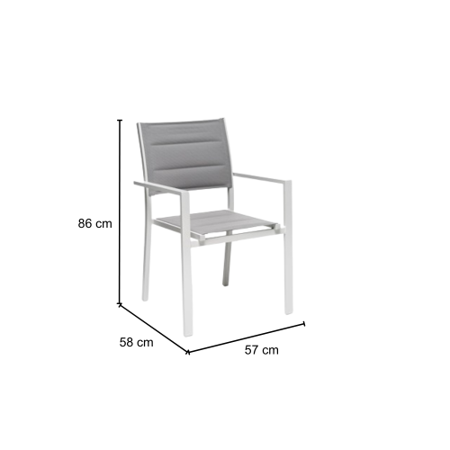 - GLOUPIE Set 6 Poltrone Da Esterno Alamos In Alluminio Verniciato Bianco, Impilabile, L 57 x P 58 x H 86 Cm, Seduta In Textilene