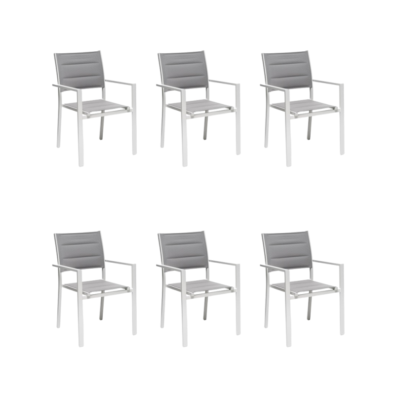 GLOUPIE Set 6 Poltrone Da Esterno Alamos In Alluminio Verniciato Bianco, Impilabile, L 57 x P 58 x H 86 Cm, Seduta In Textilene