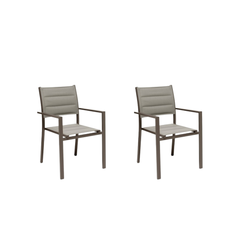 GLOUPIE Set 2 Poltrone Da Esterno Alamos In Alluminio Verniciato Marrone, Impilabile, L 57 x P 58 x H 86 Cm, Seduta In Textilene
