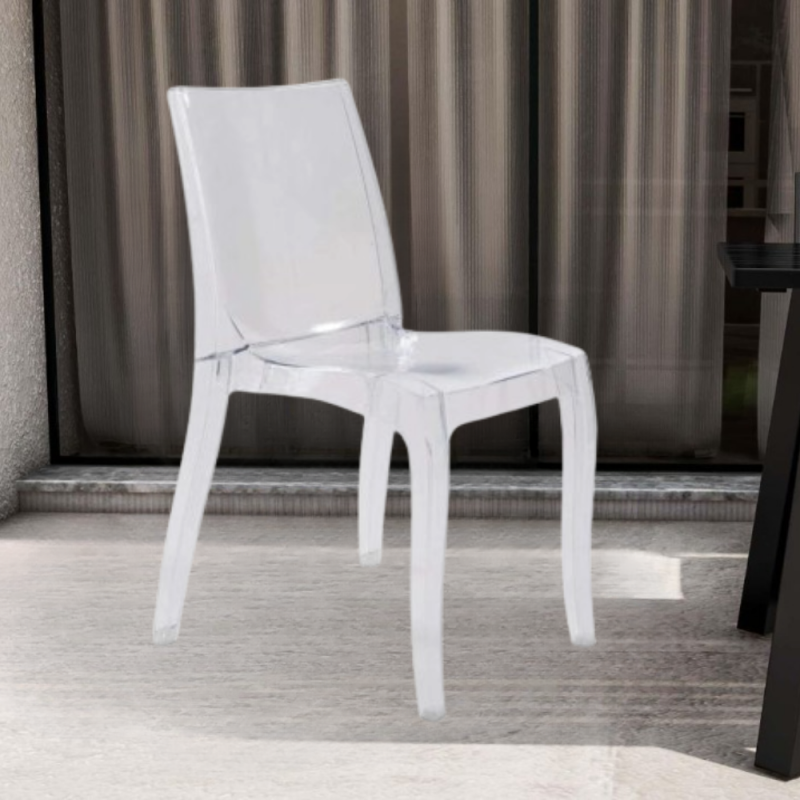 [Qualita' certificata made in italy]: Gloupie sedia per ambienti indoor ed outdoor diamond realizzata in policarbonato di alta qualita' resistente alle intemperie, ai raggi uv, ai graffi e agli urti in finitura trasparente, impilabile, lunghezza 54 cm x profondità 50 cm x altezza 84 cm, seduta confortevole 100% made in italy