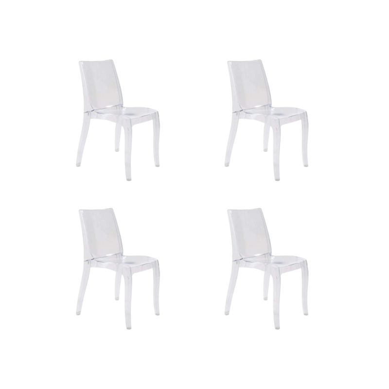 - GLOUPIE Set 4 Sedie Da Interno Ed Esterno Diamond In Policarbonato Trasparente, Impilabile, L 54 x P 50 x H 84 Cm, Made In Italy