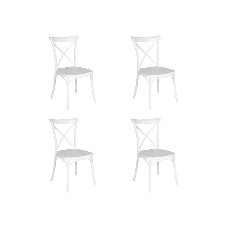 GLOUPIE Set 4 Sedie Da Interno Ed Esterno Frankie In Polipropilene Bianco, Impilabile, L 47,5 x P 48 x H 88 Cm