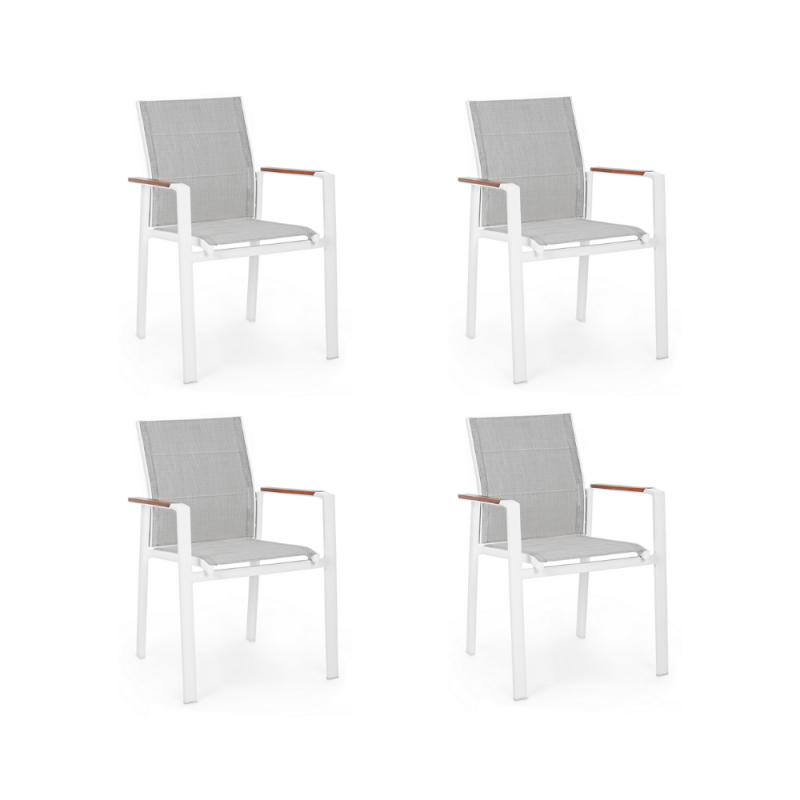 - KLULK Set 4 Poltrone Da Esterno Polignano In Alluminio Verniciato Bianco Con Inserti In Polywood, Impilabili, 56 x 65 x H 87 Cm