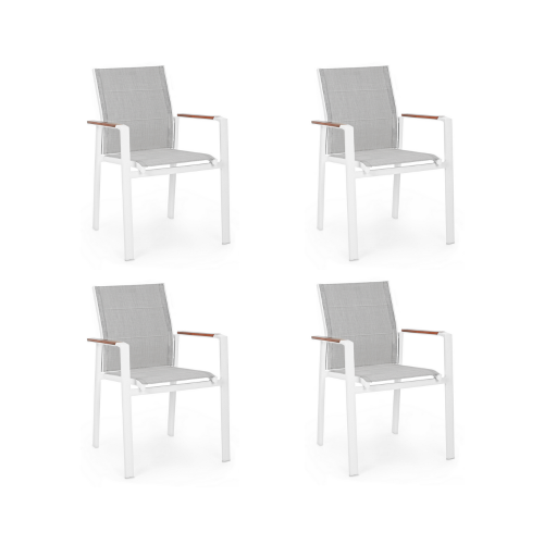 KLULK Set 4 Poltrone Da Esterno Polignano In Alluminio Verniciato Bianco Con Inserti In Polywood, Impilabili, 56 x 65 x H 87 Cm