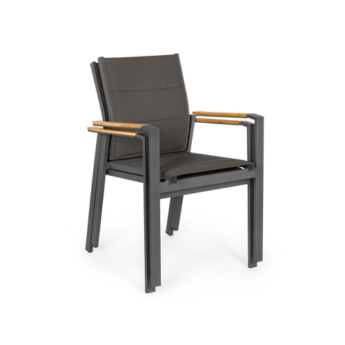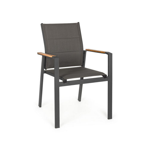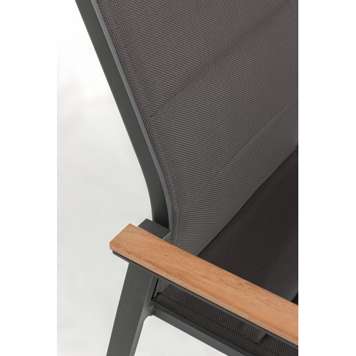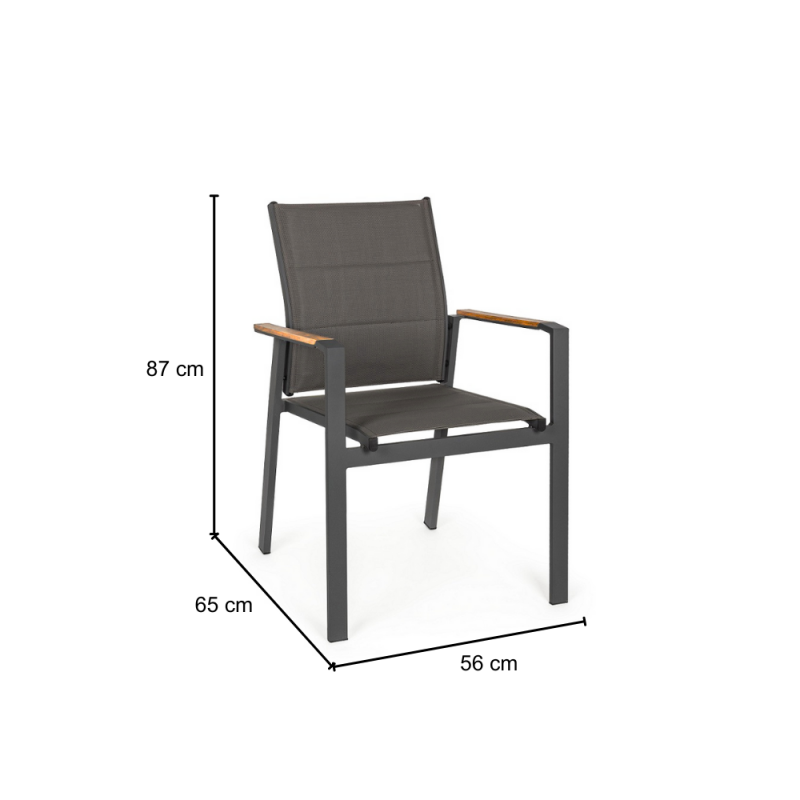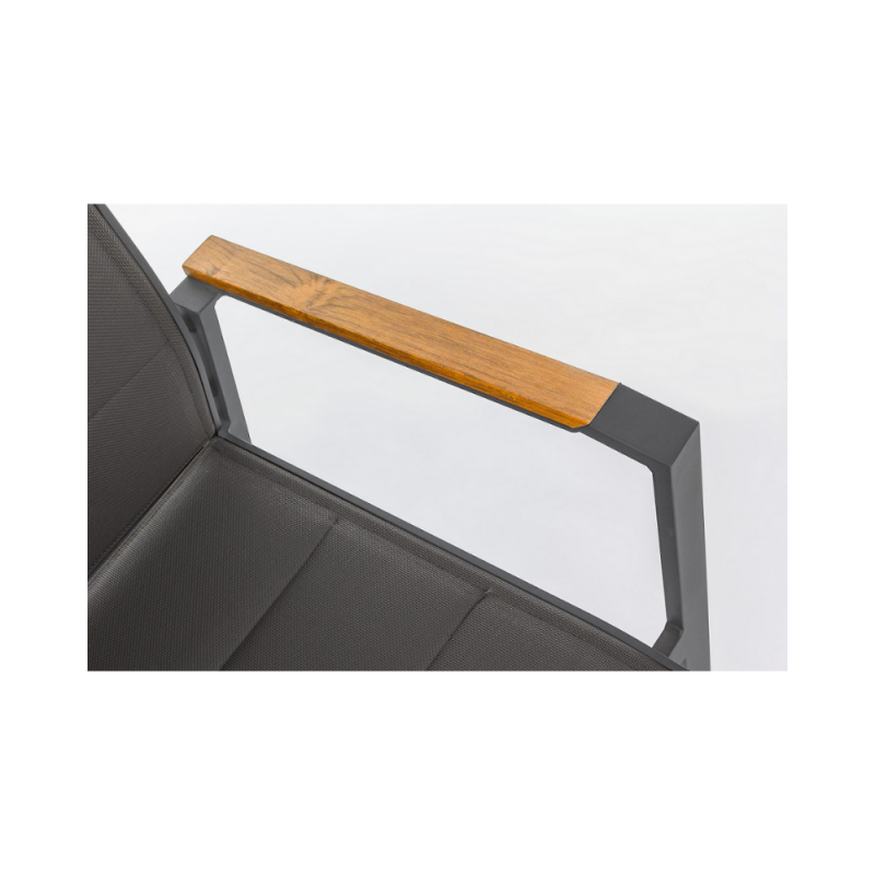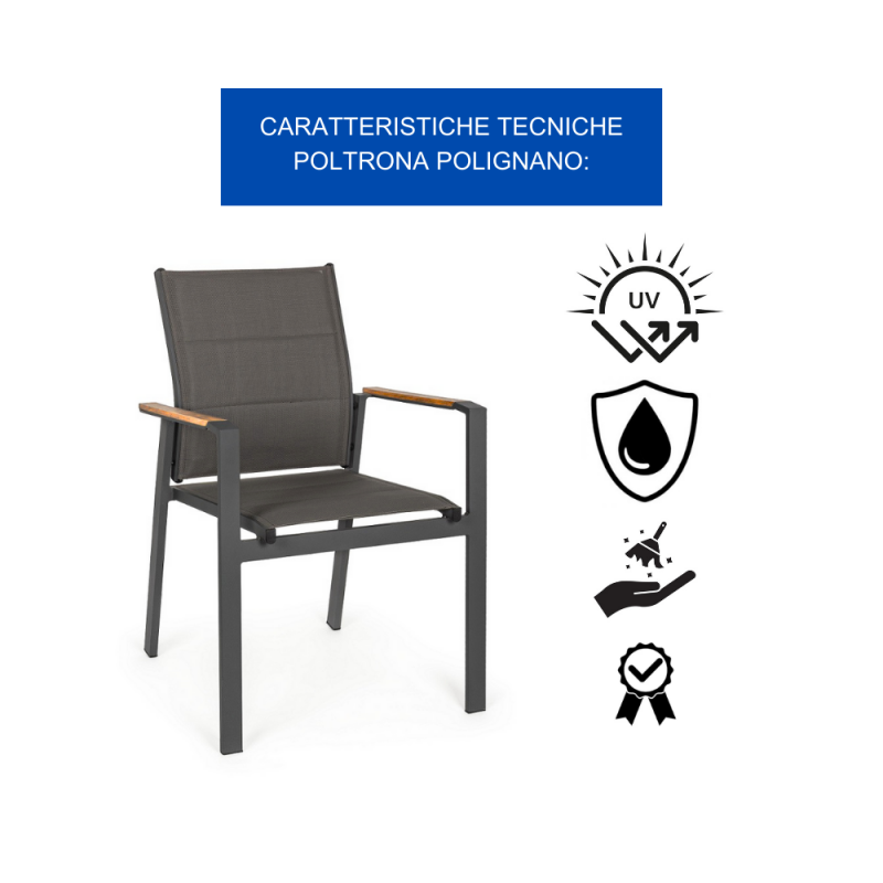 [Qualita' certificata]: Klulk poltrona da giardino polignano con braccioli dotati di inserti in polywood color teak, struttura realizzata in alluminio verniciato a polvere epossidica resistente ai raggi uv e alle intemperie, impilabile, lunghezza 56 cm x profondità 65 cm x altezza 87 cm, seduta confortevole in textilene morbido e anti ingiallimento per arredo esterno, terrazze, piscina, patios e balconate