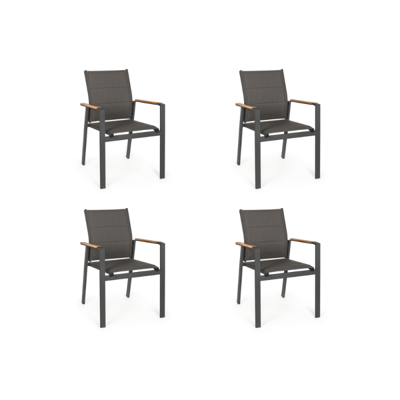 KLULK Set 4 Poltrone Polignano In Alluminio Verniciato Antracite Con Inserti In Polywood, Impilabili, 56 x 65 x H 87 Cm