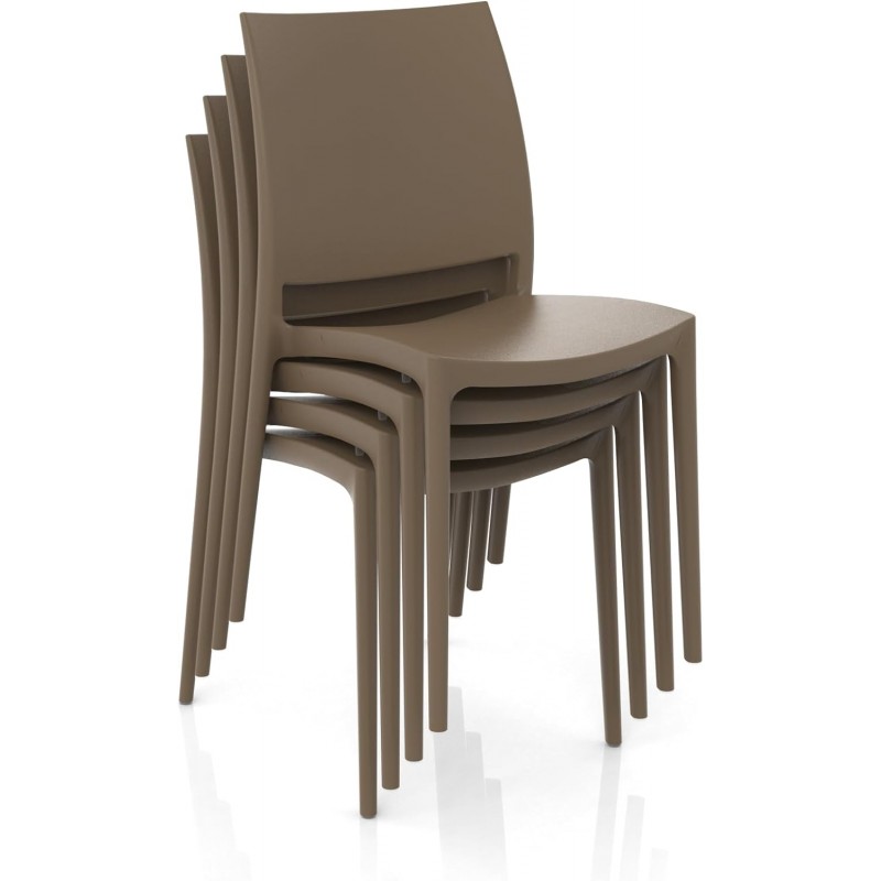 GLOUPIE Set 4 Sedie Da Esterno E Interno Impilabile Life In Polipropilene Neutro Rinforzato Color Tortora 43,5 x 50,5 x H 84 Cm