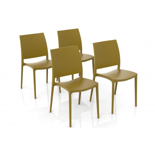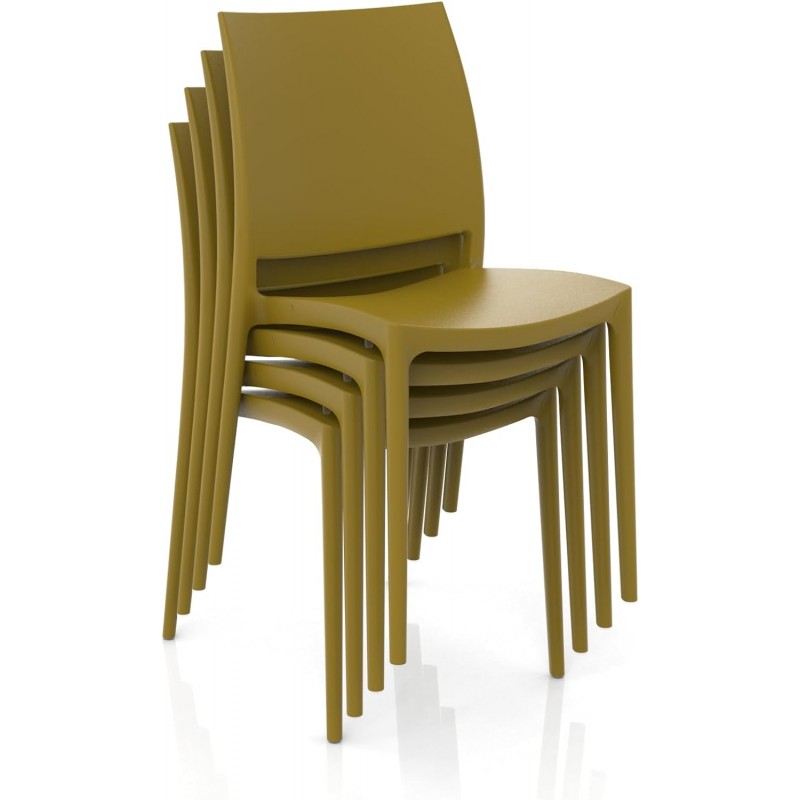 - GLOUPIE Set 4 Sedie Da Esterno E Interno Impilabile Life In Polipropilene Neutro Rinforzato Giallo Senape 43,5 x 50,5 x H 84 Cm