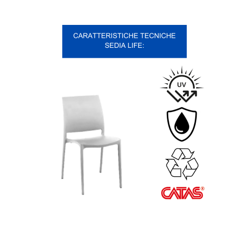 [Sicurezza e affidabilita']: La sedia life è un prodotto sicuro e affidabile, realizzato con materiali di alta qualità e testato per garantirne la resistenza e la stabilità. La struttura robusta è in grado di sopportare un peso fino a 120 kg, mentre i piedini fermi e saldi assicurano una perfetta aderenza al suolo, prevenendo cadute e ribaltamenti. Lo spazio vuoto sul fondo dello schienale facilita la presa e il trasporto, rendendola ancora più pratica da utilizzare