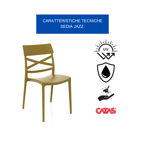 [Qualita' certificata made in italy]: Gloupie sedia per ambienti esterni e interni impilabile jazz in polipropilene neutro rinforzato resistente ai raggi uva, all'acqua, ai graffi e agli urti, lunghezza 44,5 x profondità 54,5 x altezza 85,5 cm, 100% riciclabile ed ecologica secondo gli standard per la sostenibilità ambientale, totalmente progettata e realizzata in italia, a norma catas per l'utilizzo anche in settori commerciali di tipo contract