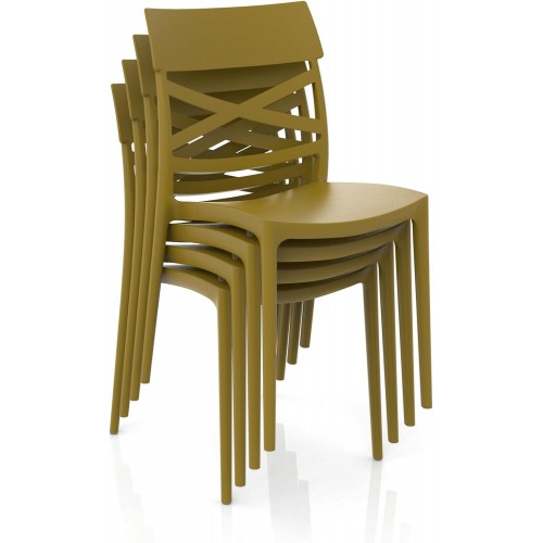 - GLOUPIE Set 4 Sedie Impilabili Jazz In Polipropilene Neutro Rinforzato Giallo Senape, L 44,5 x P 54,5 x H 85,5 Cm, Made In Italy
