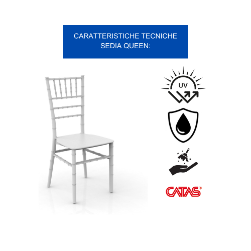 [Design versatile e funzionale]: Dallo stile fine ed elegante in colorazione bianca da cerimonia ed eventi, la sedia queen si presta ad arredare con gusto e modernità qualsiasi ambiente, interno o esterno. Che si tratti del tuo giardino, terrazzo, balcone, cucina, bar o ristorante, si integrerà perfettamente donando un tocco di raffinatezza. Compatta, e' ideale anche per spazi ridotti, mentre la possibilità di impilarla facilita lo stoccaggio e il trasporto