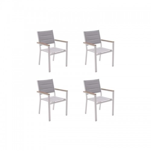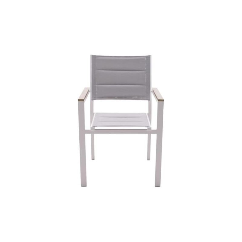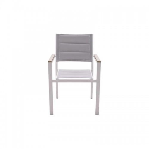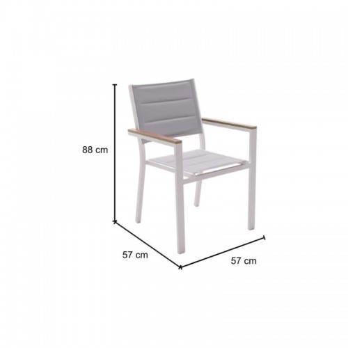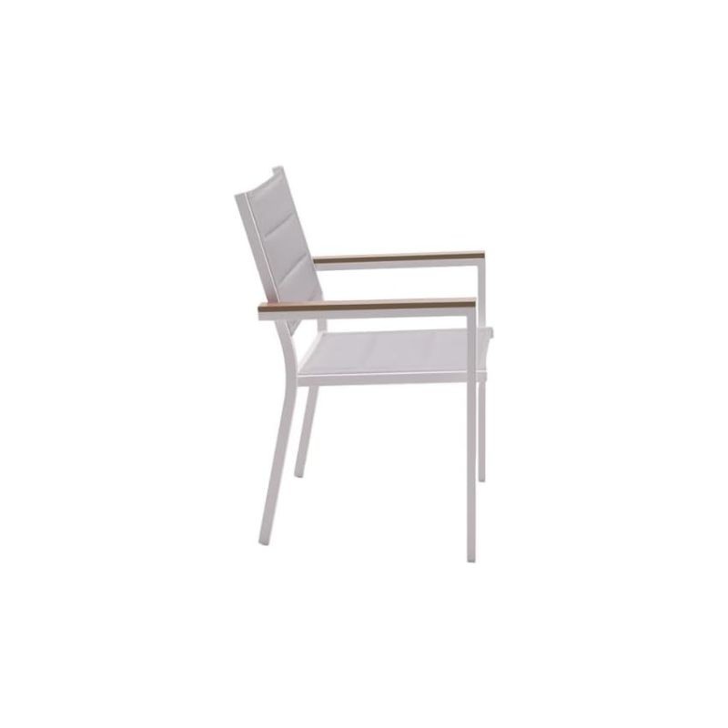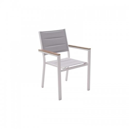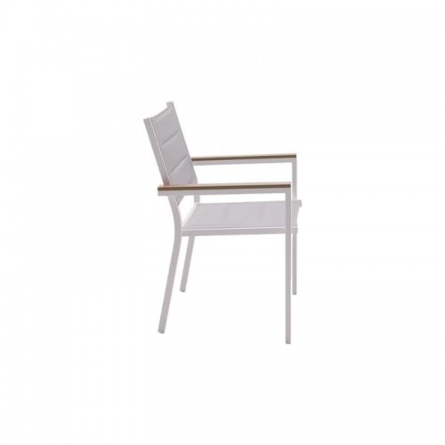 KLULK Poltrona Da Giardino Cayman Con Braccioli Dotati Di Inserti In Polywood Color Teak, Struttura Realizzata In Alluminio Verniciato A Polvere Epossidica Resistente Ai Raggi UV E Alle Intemperie, Impilabile, Lunghezza 57 Cm x Profondità 57 Cm x Altezza 88 Cm, Seduta Confortevole In Textilene Morbido E Anti Ingiallimento Per Arredo Esterno, Terrazze, Piscina, Patios E Balconate