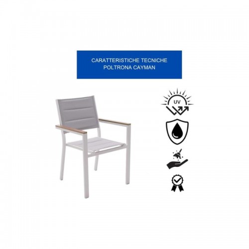 Dimenticati Di Dover Rimettere A Posto La Tua Poltrona Da Giardino Ogni Volta Che Piove O Tira Vento! La Sedia Cayman è Realizzata In Alluminio Verniciato A Polvere Epossidica Bianca Con Inserti In Polywood, Materiali Resistenti Ai Raggi Uv E Alle Intemperie. Resiste Al Sole Cocente Dell'Estate E Alle Piogge Torrenziali Dell'Inverno, Senza Scolorire O Arrugginirsi. Non Dovrai Nemmeno Preoccuparti Di Pulirla Frequentemente: Un Panno Umido Sarà Sufficiente