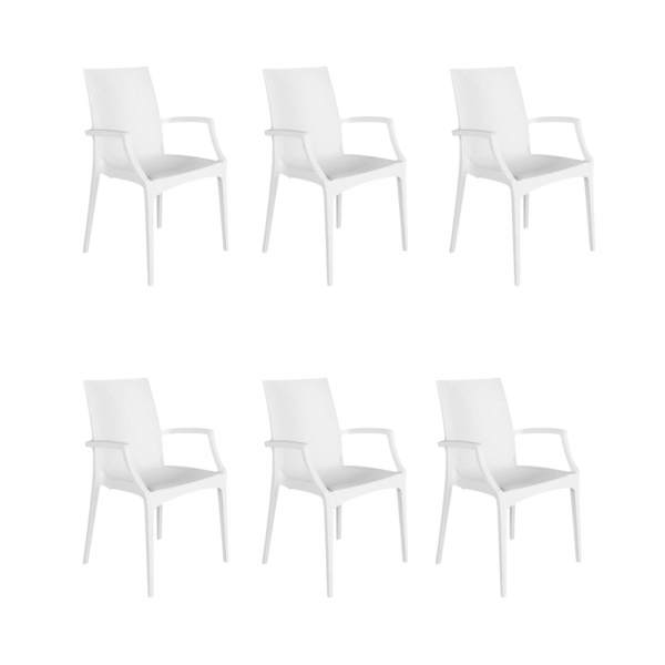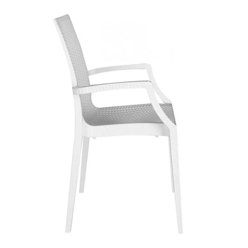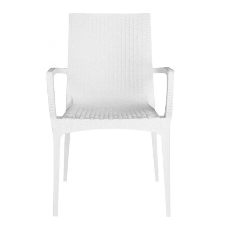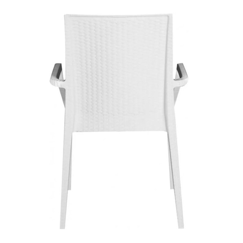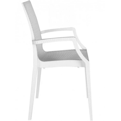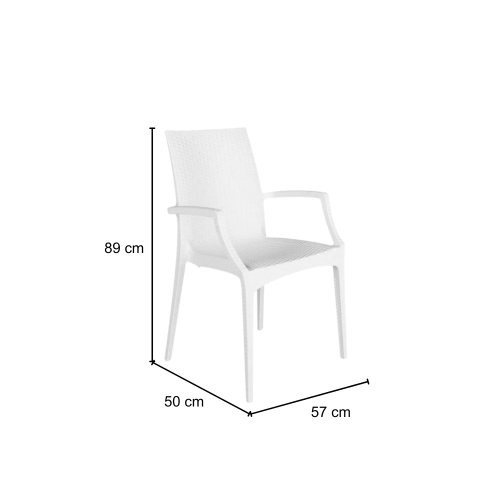 GLOUPIE Poltrona Da Giardino Jersey Con Braccioli, In Polipropilene Bianco Dall'Effetto Rattan, Impilabile, 57 x 50 x H 89 Cm