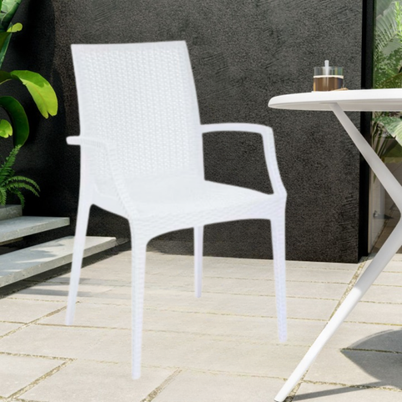 - GLOUPIE Poltrona Da Giardino Jersey Con Braccioli, In Polipropilene Bianco Dall'Effetto Rattan, Impilabile, 57 x 50 x H 89 Cm