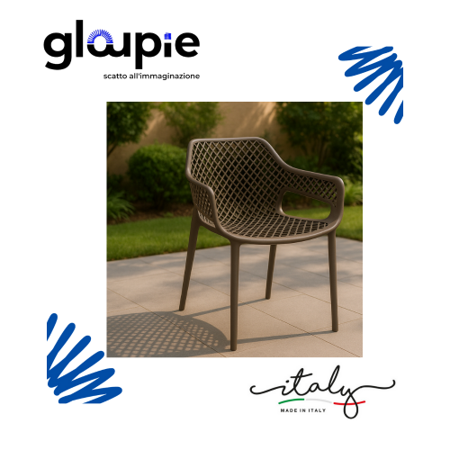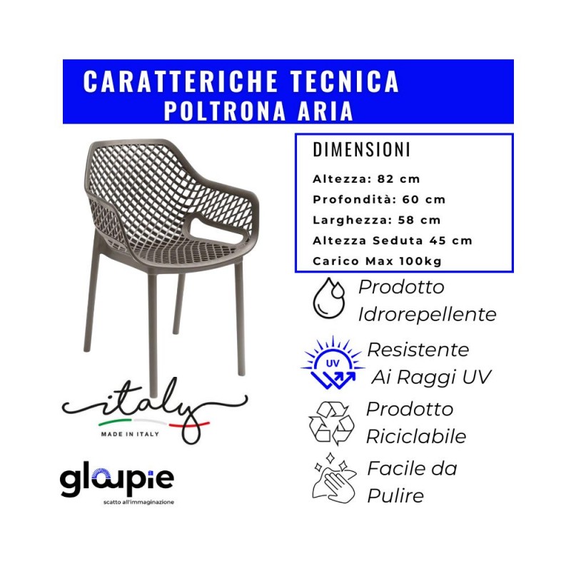 - Gloupie Set 2 Poltrone Aria in Polipropilene Taupe, Impilabile,58x60x82 cm, 3,8 kg, Schienale Ergonomico,Made in Italy