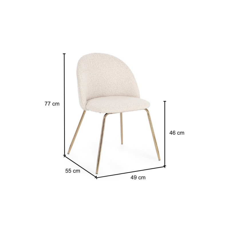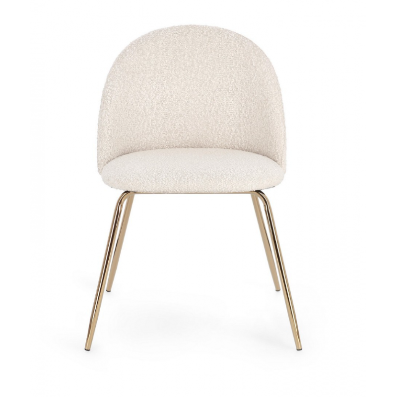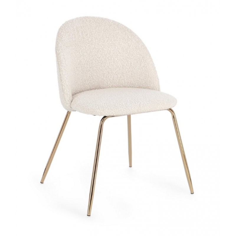 - Sedia Tanya Oro Avorio Effetto Bouclè Con Gambe In Acciaio