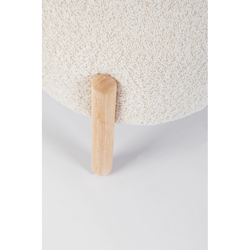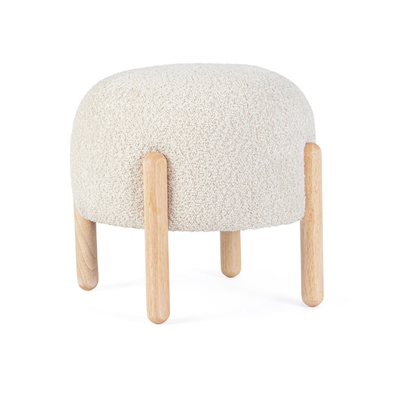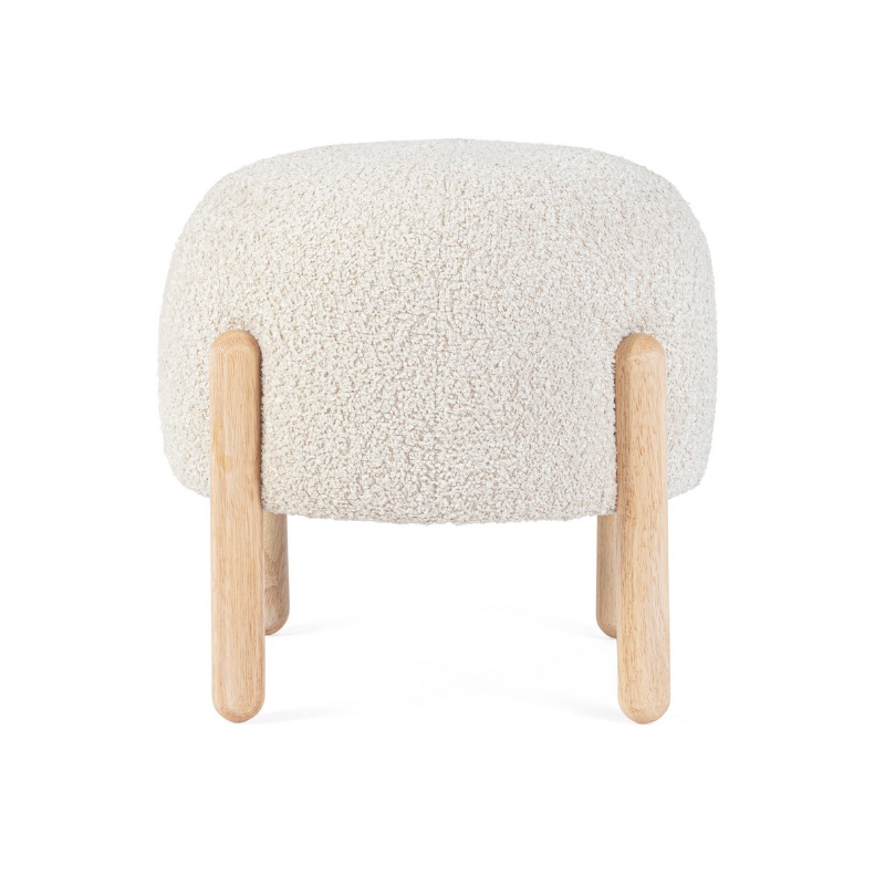 Sgabello Linea Dayla in Poliestere Effetto Bouclè Naturale con Gambe in Legno Rubber Wood