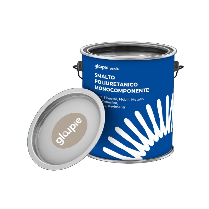 - GLOUPIE GENIAL Smalto Poliuretanico Monocomponente Ad Acqua Per Interni Ed Esterni, Tortora Opaco, 0,75 Lt, Made In Italy