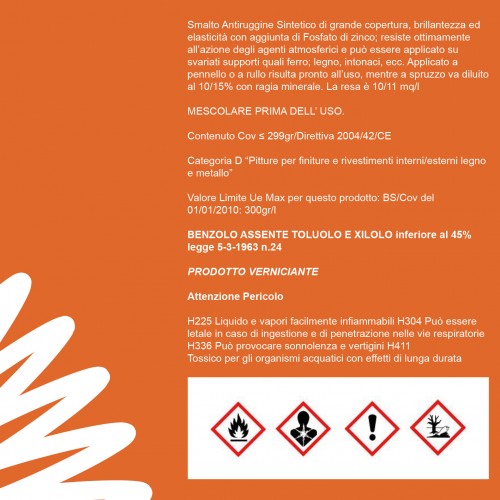 [Qualita' made in italy]: Smalto antiruggine sintetico con aggiunta di fosfato di zinco per la protezione e la decorazione di finiture e rivestimenti di interni ed esterni, confezione da 0,75 litri, interamente prodotto e confezionato in italia con materiali di alta qualità