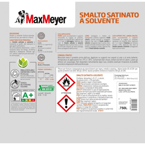 Trasforma le tue superfici in un capolavoro di resistenza e bellezza con lo Smalto Satinato A Solvente MaxMeyer!