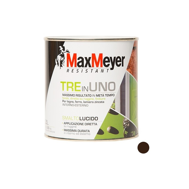 - Smalto tre in uno lucido marrone 0.50 lt legno ferro lamiera zincata antiruggine
