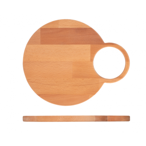 Tagliere sagomato tondo con manico realizzato in legno naturale di faggio