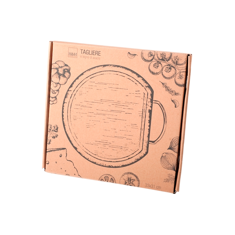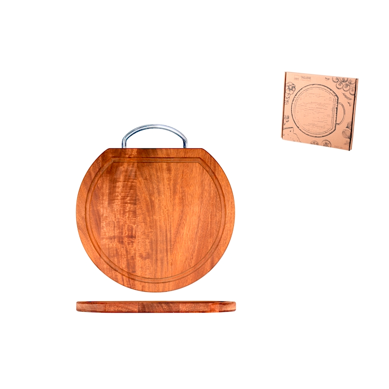 - Tagliere In Legno Di Acacia Rotondo Con Bordo Raccoglisucco 33 x 31 cm