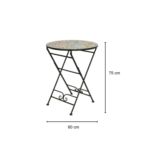 [Qualita' certificata]: Gloupie tavolo pieghevole da esterno per giardini, terrazze, patios, balconate in acciaio verniciato a polvere epossidica nera con decorazioni a mosaico floreale linea itaca, diametro 60 cm x altezza 75 cm, resistente ai raggi uv, portata massima di 40 kg