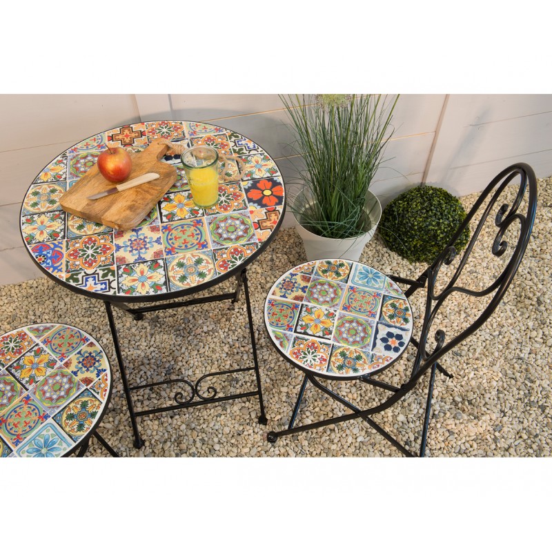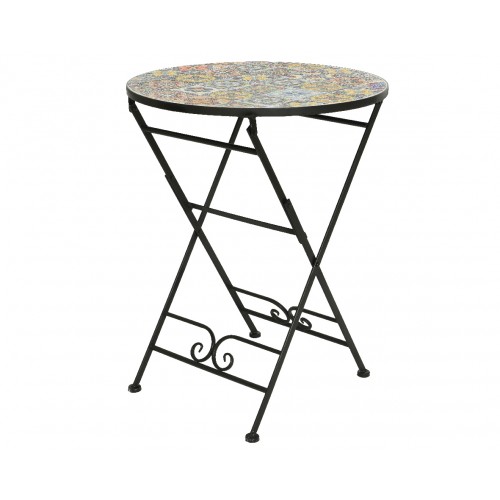 GLOUPIE Tavolo Pieghevole Da Esterno In Acciaio Verniciato A Polvere Epossidica Nera Con Mosaico Floreale Itaca