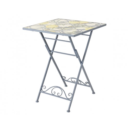 [Qualita' certificata]: Gloupie tavolo pieghevole da esterno per giardini, terrazze, patios, balconate in acciaio verniciato a polvere epossidica blu laguna con decorazioni a mosaico di agrumi linea positano, lunghezza 58 cm x larghezza 58 cm x altezza 76 cm, resistente ai raggi uv, portata massima di 40 kg