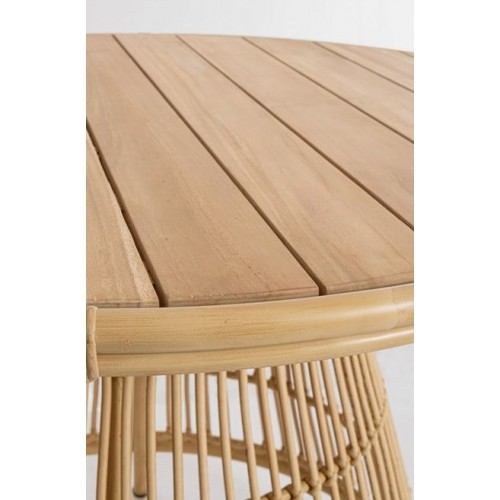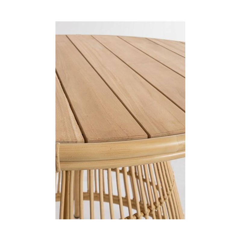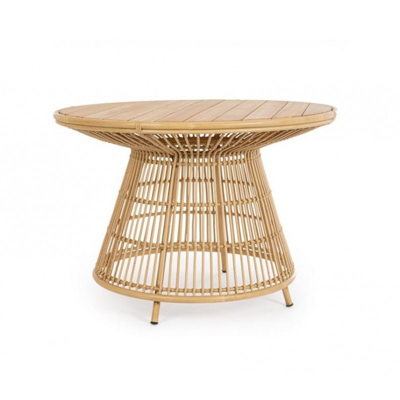 Tavolo Da Esterno Adelma Con Struttura In Alluminio Verniciato A Polvere Effetto Rattan E Piano In Teak D 110 x H 75 cm
