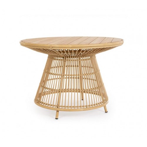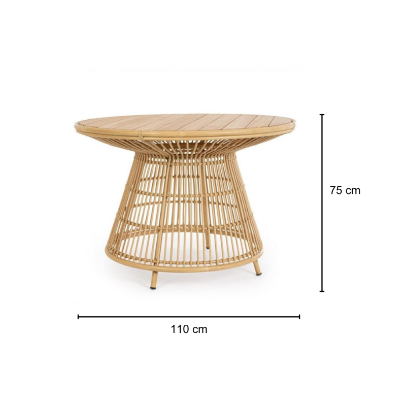 - Tavolo Da Esterno Adelma Con Struttura In Alluminio Verniciato A Polvere Effetto Rattan E Piano In Teak D 110 x H 75 cm