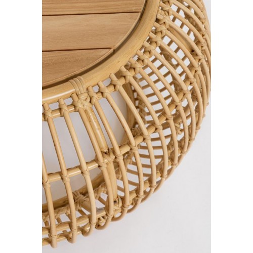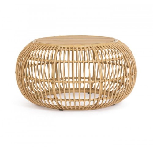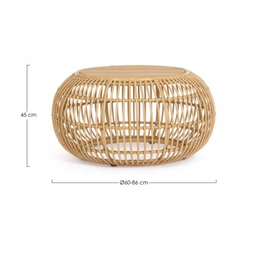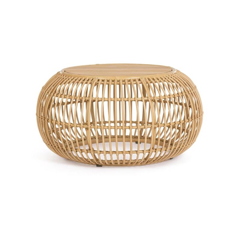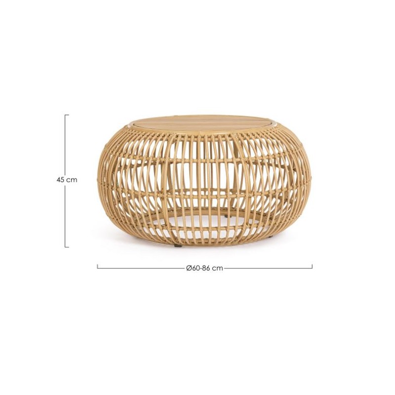 - Tavolino Da Esterno Florisel Con Struttura In Alluminio Verniciato A Polvere Effetto Rattan E Piano In Teak D 86 x H 45 cm
