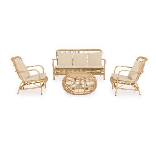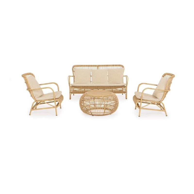 Struttura realizzata in alluminio verniciato a polvere di poliestere resistente agli agenti atmosferici e ai raggi uv dall'effetto rattan