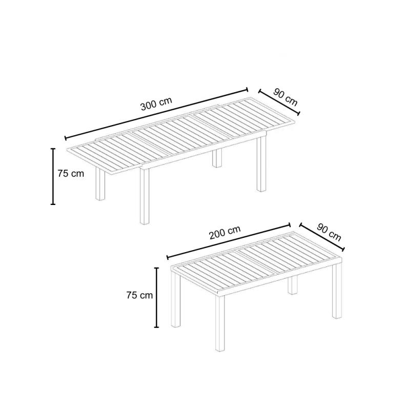 [Qualita' certificata]: Gloupie tavolo allungabile da giardino per 10 persone alamos con struttura in alluminio verniciato a polvere epossidica resistente ai raggi uv e alle intemperie, lunghezza variabile da 200 a 300 cm x profondità 100 cm x altezza 75 cm, dotato di prolunga estraibile con sistema a scomparsa e piano a doghe sempre in alluminio