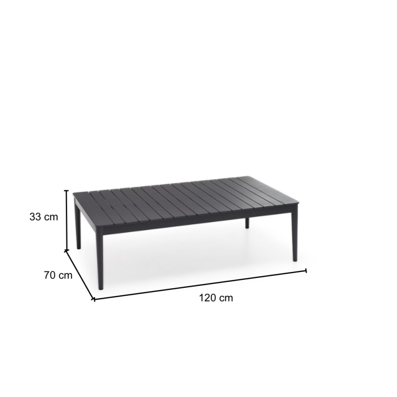 KLULK Tavolino Da Esterno Aruba Con Struttura In Alluminio Verniciato A Polvere Di Poliestere Antracite L 120 x P 70 x H 33 Cm