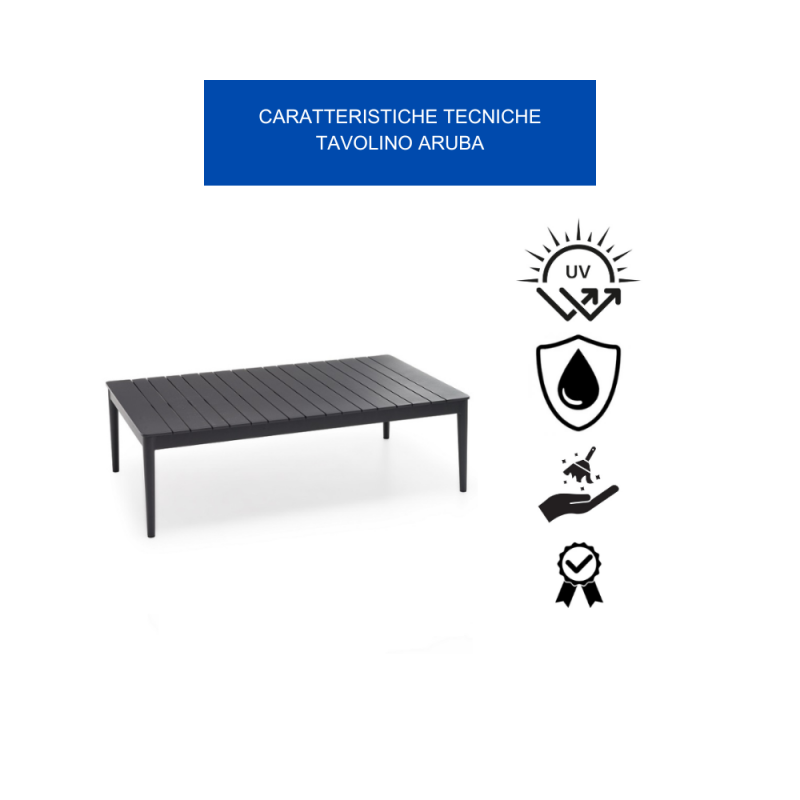 [RESISTENZA IMBATTIBILE PER UN ARREDO DURATURO]: Il Tavolino Da Esterno Aruba Di Klulk è Progettato Per Coniugare Perfettamente Resistenza Agli Agenti Atmosferici Con Un Design Moderno E Minimalista. Realizzato Con Una Struttura In Alluminio Verniciato A Polvere Di Poliestere Antracite, Aruba è In Grado Di Resistere A Pioggia, Sole, Graffi E Urti Senza Subire Danni. Dimentica La Ruggine E La Scoloritura: Questo Tavolino è Pensato Per Essere Un Complemento D'Arredo Esterno Duraturo