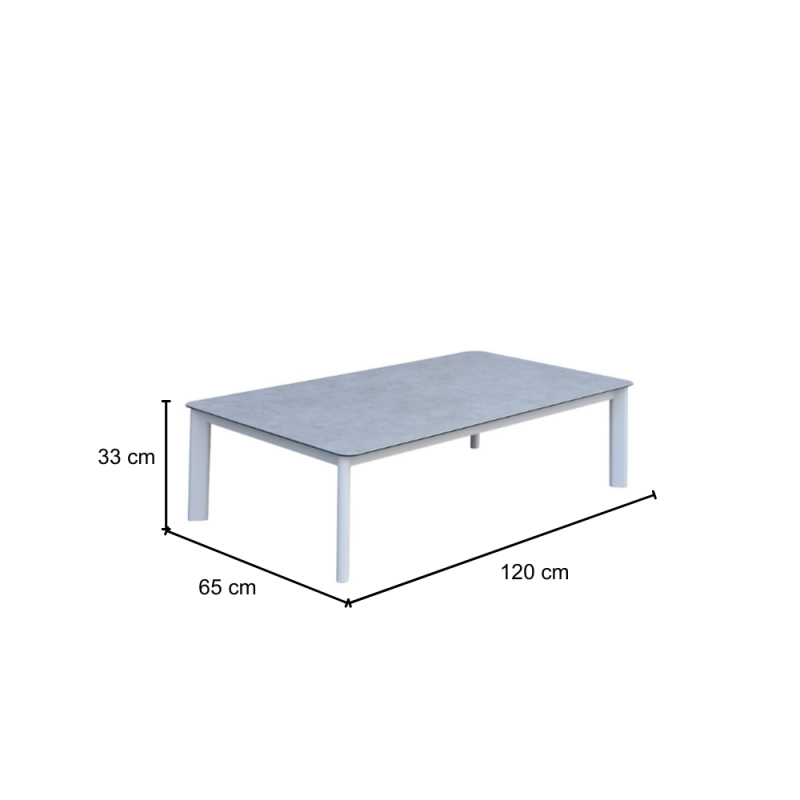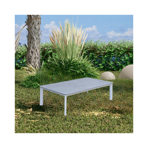 - KLULK Tavolino Da Esterno Martinica In Alluminio Verniciato Bianco Con Piano In Vetro Effetto Materico L 120 x P 65 x H 33 Cm
