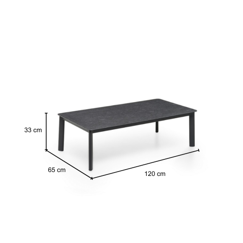 KLULK Tavolino Da Esterno Martinica In Alluminio Verniciato Antracite Con Piano In Vetro Effetto Materico L 120 x P 65 x H 33 Cm