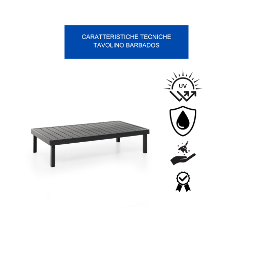 - KLULK Tavolino Da Esterno Barbados Con Struttura In Alluminio Verniciato A Polvere Antracite L 120 x P 75 x H 36 Cm