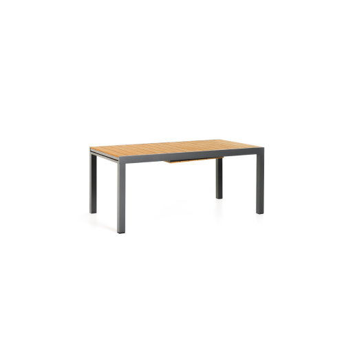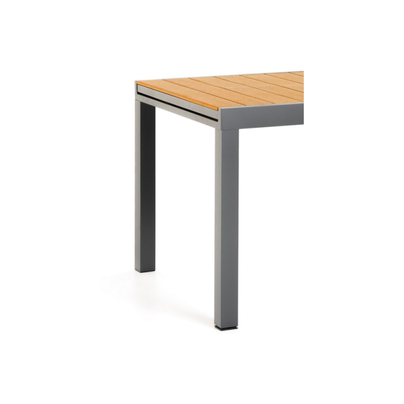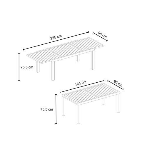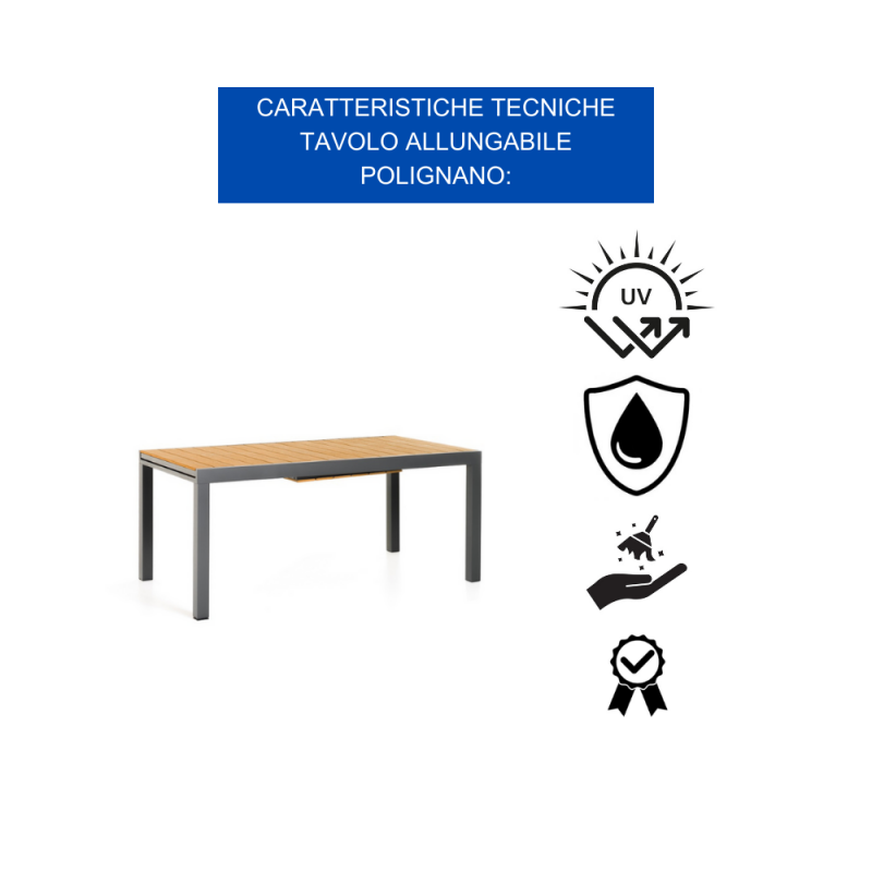 [Qualita' certificata]: Klulk tavolo allungabile da giardino polignano con struttura in alluminio verniciato a polvere epossidica resistente ai raggi uv e alle intemperie, lunghezza variabile da 164 a 225 cm x profondità 90 cm x altezza 75,5 cm, dotato di prolunga estraibile con sistema a scorrimento e piano a doghe in polywood dalla colorazione teak