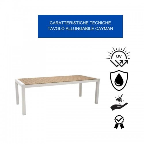 KLULK Tavolo Allungabile Da Giardino Cayman Con Struttura In Alluminio Verniciato A Polvere Epossidica Resistente Ai Raggi UV E Alle Intemperie, Lunghezza Variabile Da 220 A 292 Cm x Profondità 100 Cm x Altezza 75 Cm, Dotato Di Prolunga Estraibile Con Sistema A Scorrimento E Piano A Doghe In Polywood Dalla Colorazione Teak