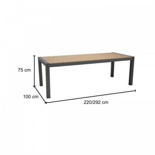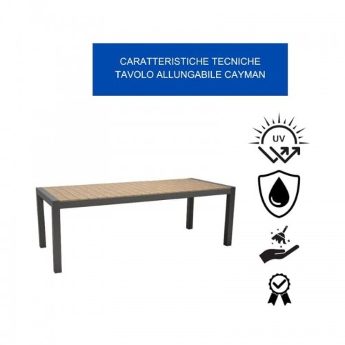 KLULK Tavolo Allungabile Da Giardino Cayman Con Struttura In Alluminio Verniciato A Polvere Epossidica Resistente Ai Raggi UV E Alle Intemperie, Lunghezza Variabile Da 220 A 292 Cm x Profondità 100 Cm x Altezza 75 Cm, Dotato Di Prolunga Estraibile Con Sistema A Scorrimento E Piano A Doghe In Polywood Dalla Colorazione Teak